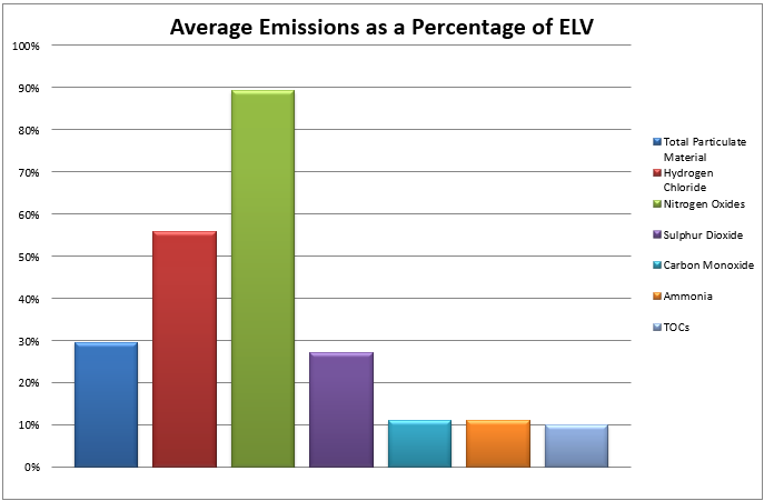 Emissions for October 2025, represented as a percentage of the respective Emissions Limit Values (ELV) of each gas, as outlined in the Industrial Emissions Directive (IED).